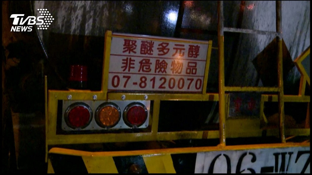 五大隊二中隊長許廣智:「是後方輪胎部分有起火,還沒有辦法確定是剎車還是輪軸的問題,目前它裡面的槽體沒有危險物品,是一個醚類的東西,沒有危險性,也沒有洩漏的疑慮。」